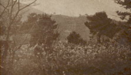 入野の原(現すすきが原)・右下に住吉明神(現土居神社の鳥居と社が見える)