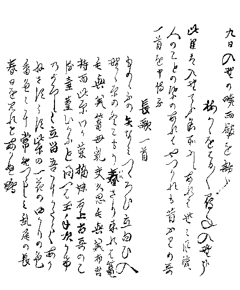 上は紀行文復路の25日、26日、27日暁雨館3日間。懐紙の俳諧はみえない。 上は紀行文往路の9日発句・前書・長歌次いで「はろばろの反歌」がみえる