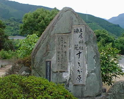 土居神社神苑「すゝきが原」と「入野吟歌碑」星田真次揮毫 昭和四十六年梅園に建立