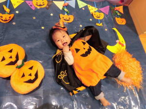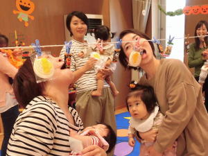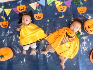 | 10月の活動 〜 活 動: ハロウィンパーティー 〜 仮 装: ハロウィン 〜 お話し: くつしたシアター 「おばけのばけばけばぁ♪」 <南吉田赤ちゃん> ![]() <垣生赤ちゃん> ![]() ![]() <ひよこ赤ちゃん・ぴよぴよ> ![]() <ひよこ赤ちゃん・キラキラ> ![]() ![]() |