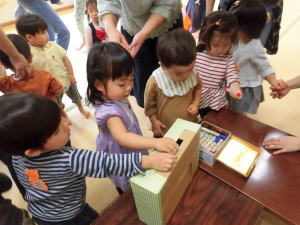 | 10月の活動 ~ 活 動 : ハロウィンパーティー ~ ~ 仮 装 : ハロウィンの仮装 ~ しかけカード : 「ふうせん」~ <垣生3才> <垣生2才> ![]() <垣生1才> ![]() <南吉田3才> ![]() <南吉田♥2才&3才> ![]() ![]() ![]() <南吉田2才> <南吉田1才> ![]() |