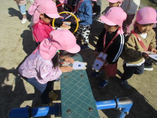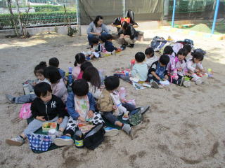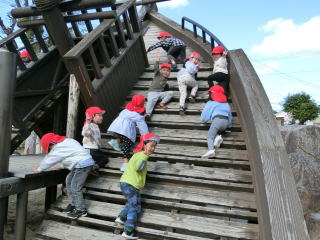 R7.10.28 楽しみにしていたハイキングデー♪「お弁当持ってきたよ!」と、嬉しそうに登園してきた子ども達。 散歩車に乗ったり、歩いて公園まで行った小さいお友達! バスに乗って公園までいった年中、年少さん! 年長児は、ちょっと遠くまでハイキングを楽しんできましたよ! 気候が良かったので、秋の自然を感じながらたくさん遊んできました。 お弁当の準備ありがとうございました。 |
