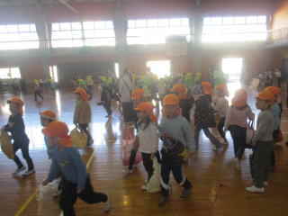 小学校に行くと、「猛獣狩りにいこうよ」というゲームをしていましたが、少し緊張しているのか、なかなか動けず…