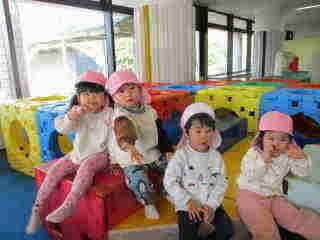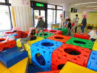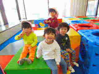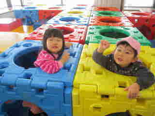 コミセンにつくとカラフルな遊具に目が輝いていた子ども達。