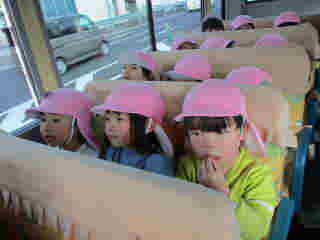 バスの中では、景色を見ながら「ここ行ったことある!」「おすしたべたいね」と、会話が