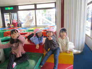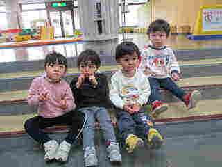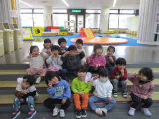 こすもす組と、すずらん組の2歳児がコミセンまで、園外保育に行きました。