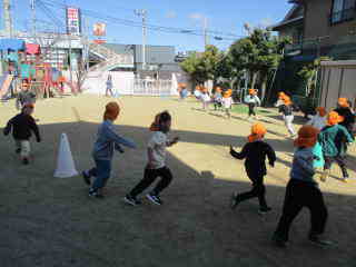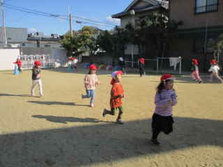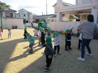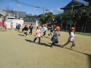しっかりと準備体操をしてから、音楽に合わせて園庭を走るのですが…