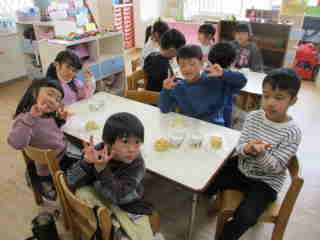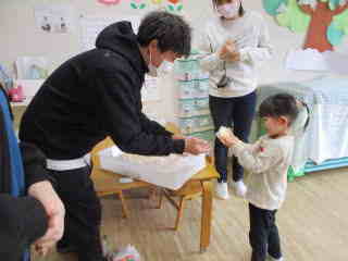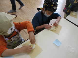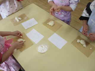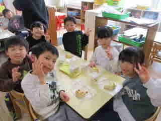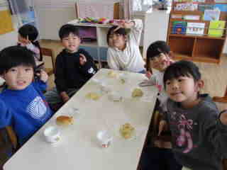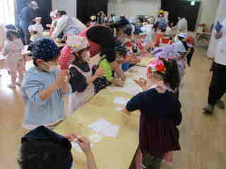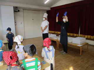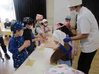 R8.2.24 幼児クラスの子ども達が楽しみにしていた、パン教室。今年もパンファミーユさんに来て頂きました。 最初にパン屋さんから「今日で何回目のパン作りですか?」と質問されると「3回目~!」と、元気に応える年長児。 いざ、パン作りがスタートすると自分が考えていた形(クマ、リボン、タコ等)に生地をちぎったりくっつけたりして 一生懸命に完成させていきました。 3時のおやつの時間には、ふわふわに焼きあがった、出来立てのパンを届けにきてくれて、大喜び♪ みんな、自分の出来上がりに大満足でしたよ。 「おいしぃ~~❤」と口々に言いながら、あっという間に食べていました。 |