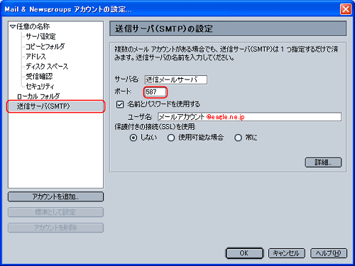 ※ @以降が「eagle.ne.jp」のメールアドレスをご利用のユーザのみ設定を行って下さい。