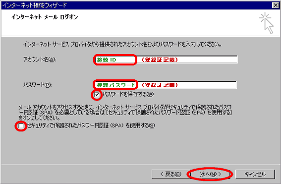 アカウント名に接続IDを入力してください。